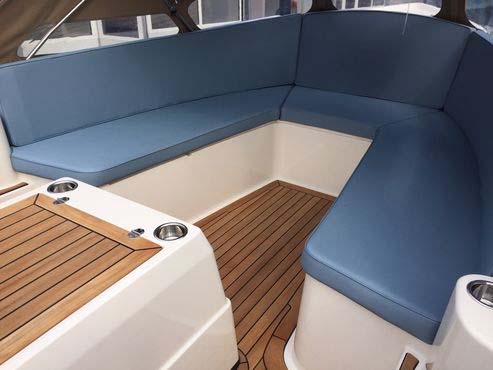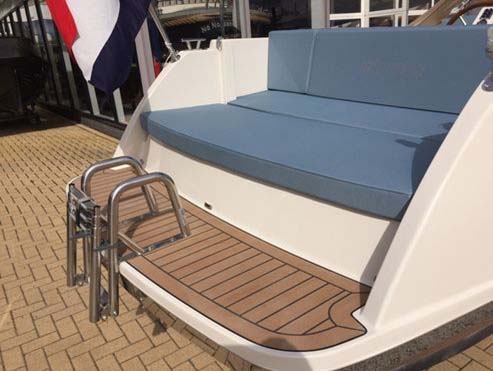 De open achterkant met riant achterdek is in een handomdraai om te bouwen tot een groot zonnebed.